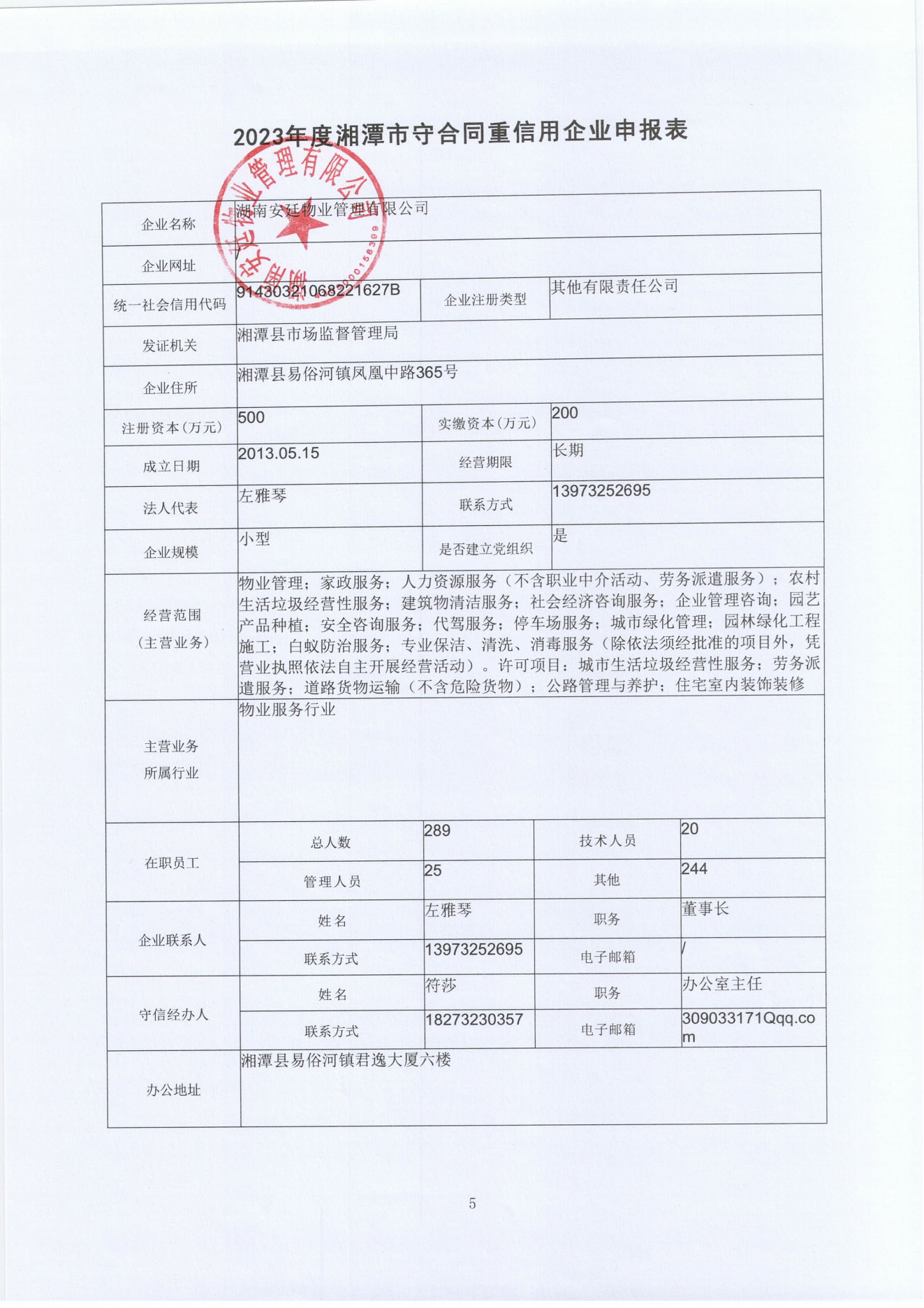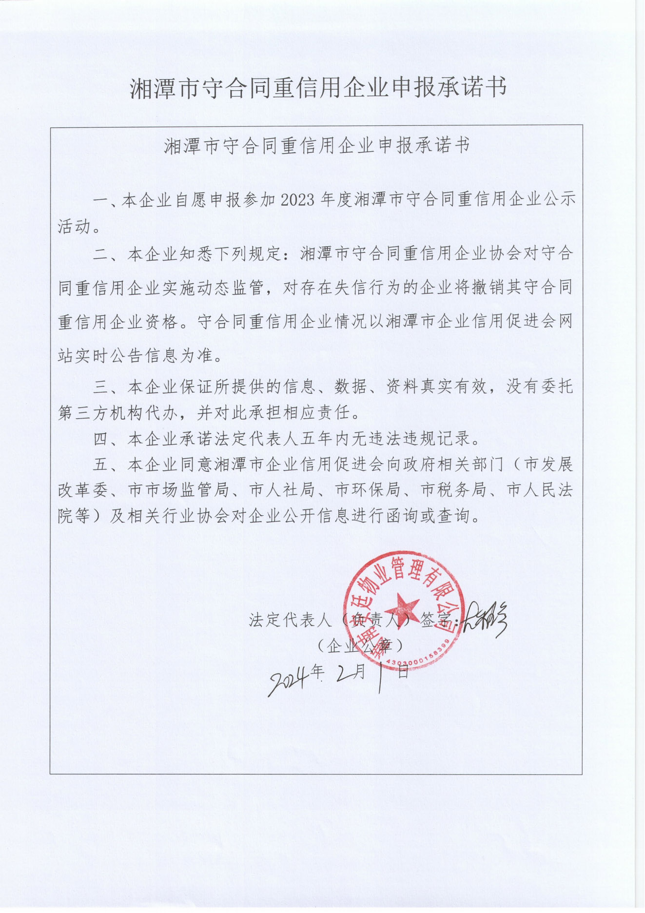 本企業根據《湘潭市守合同重信用企業申報規定》等編制 2023 年度企業信用報告書,并保證本報告書內容真實、準確、完整。
