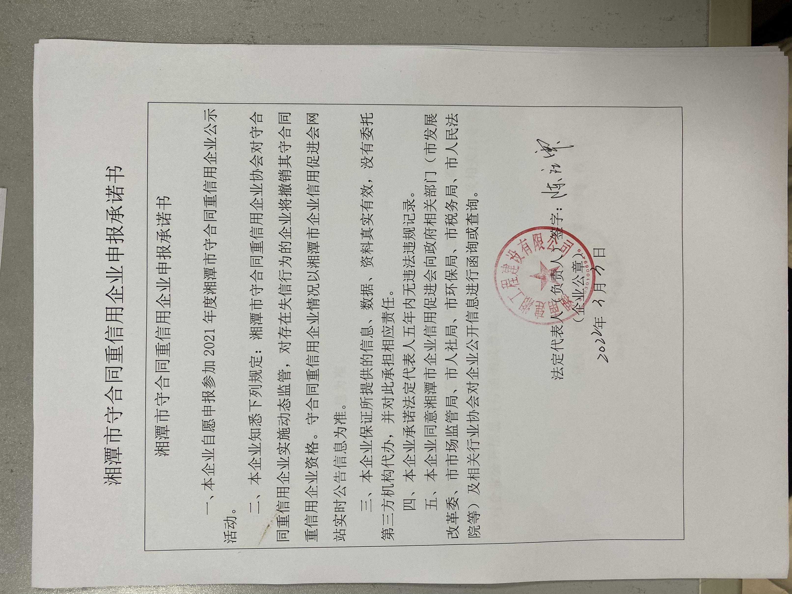 本企業根據《湘潭市守合同重信用企業申報規定》等編制 2021 年度企業信用報告書,并保證本報告書內容真實、準確、完整。