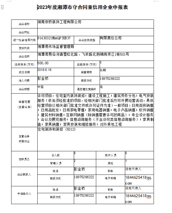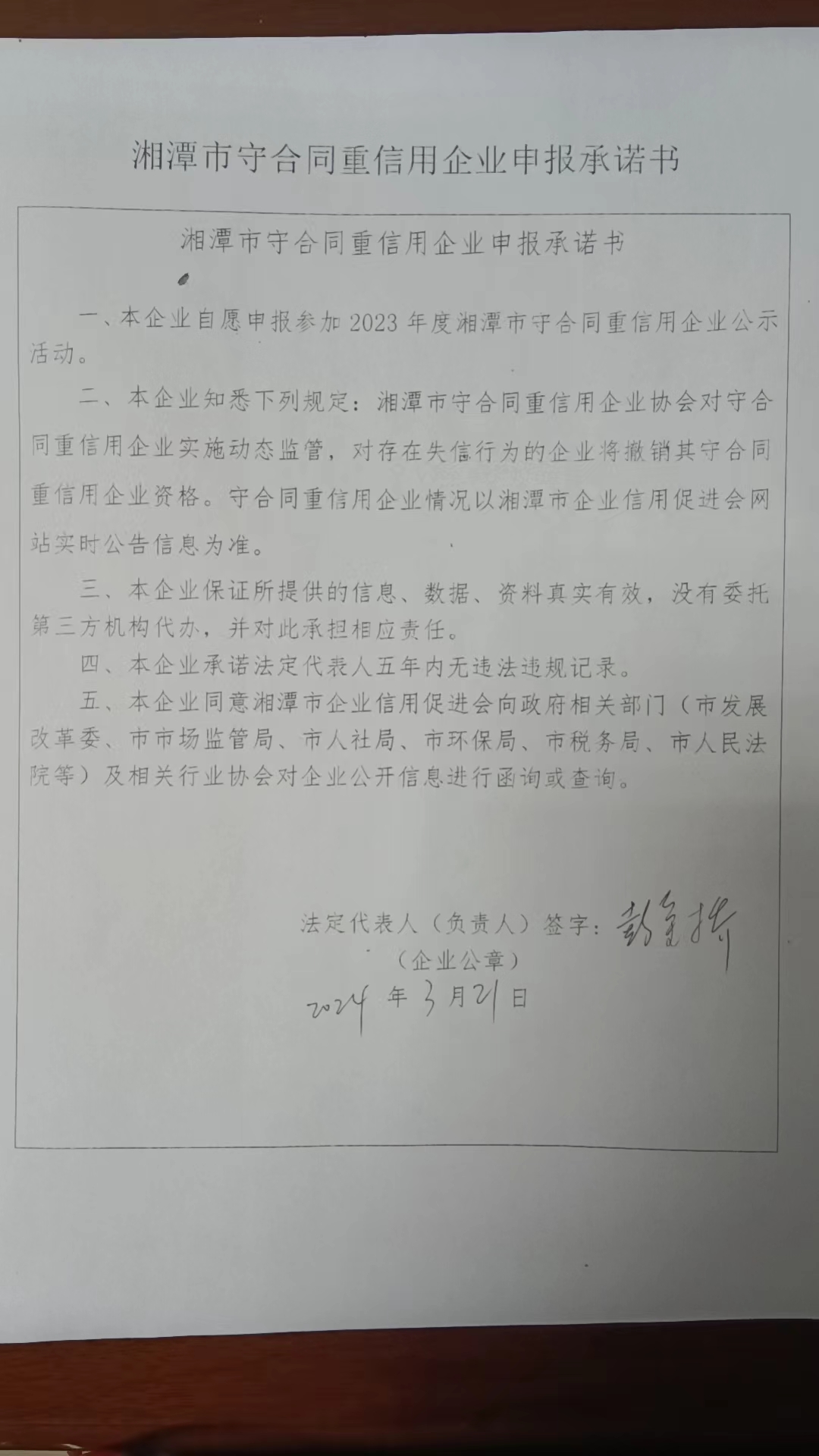 本企業根據《湘潭市守合同重信用企業申報規定》等編制 2023 年度企業信用報告書,并保證本報告書內容真實、準確、完整。