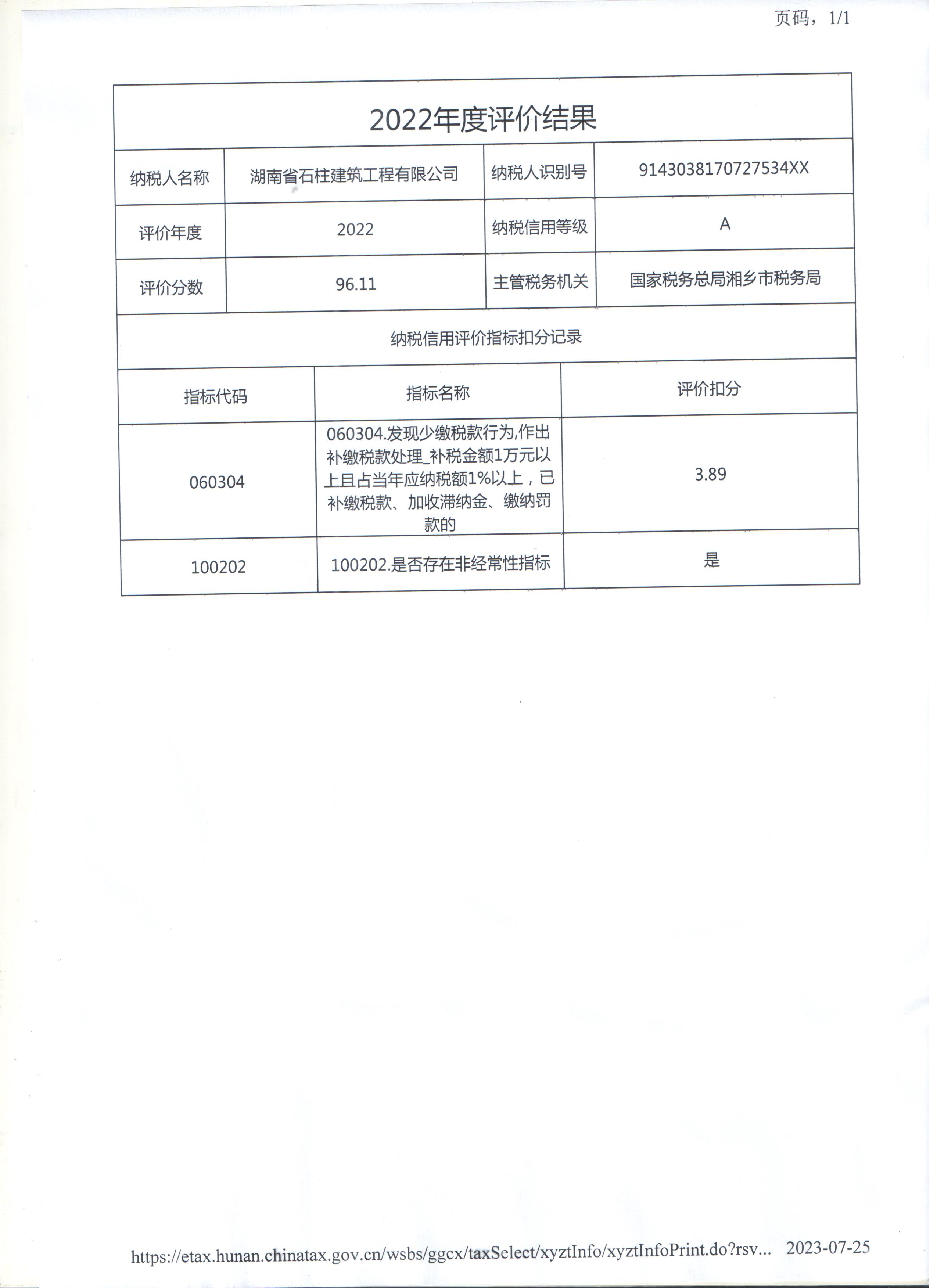 企業(yè)納稅信用等級(jí)報(bào)告: