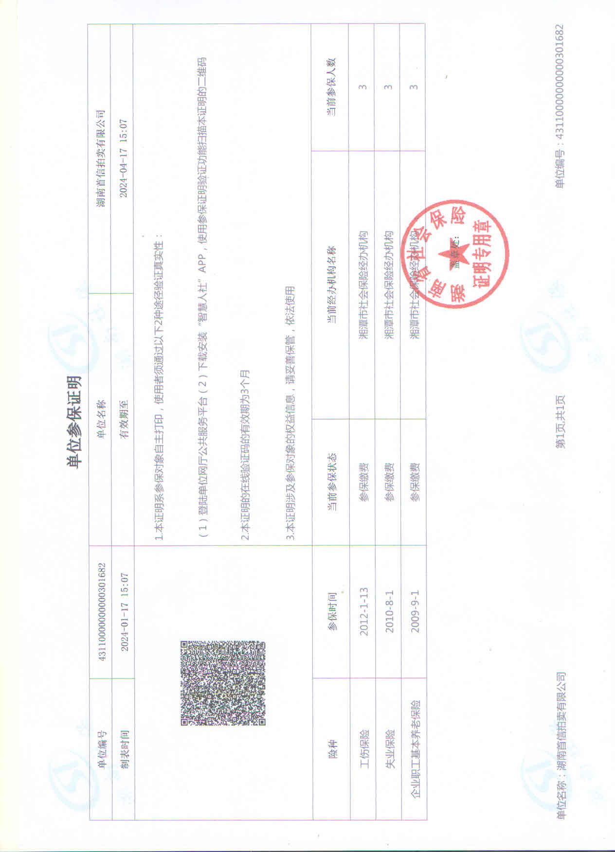社保繳納證明: