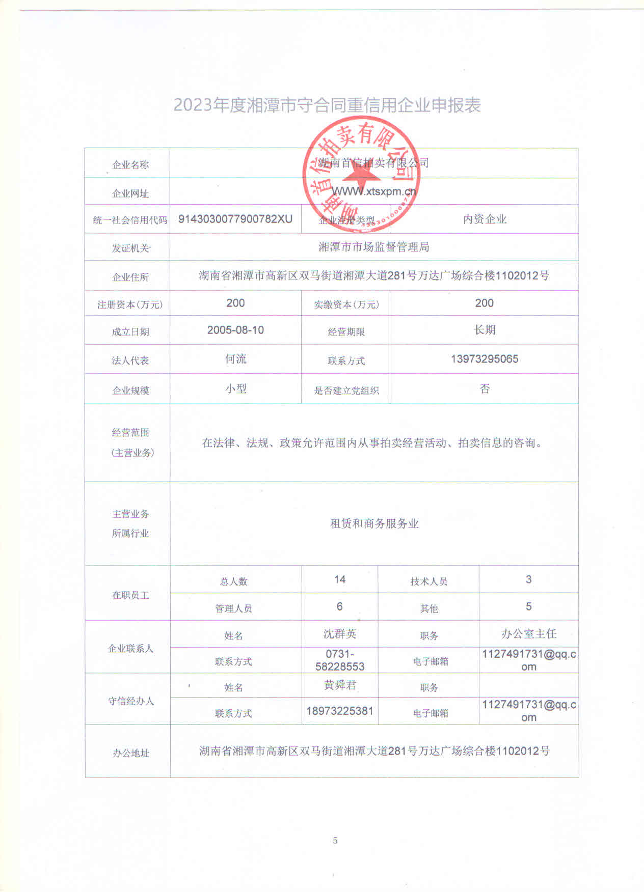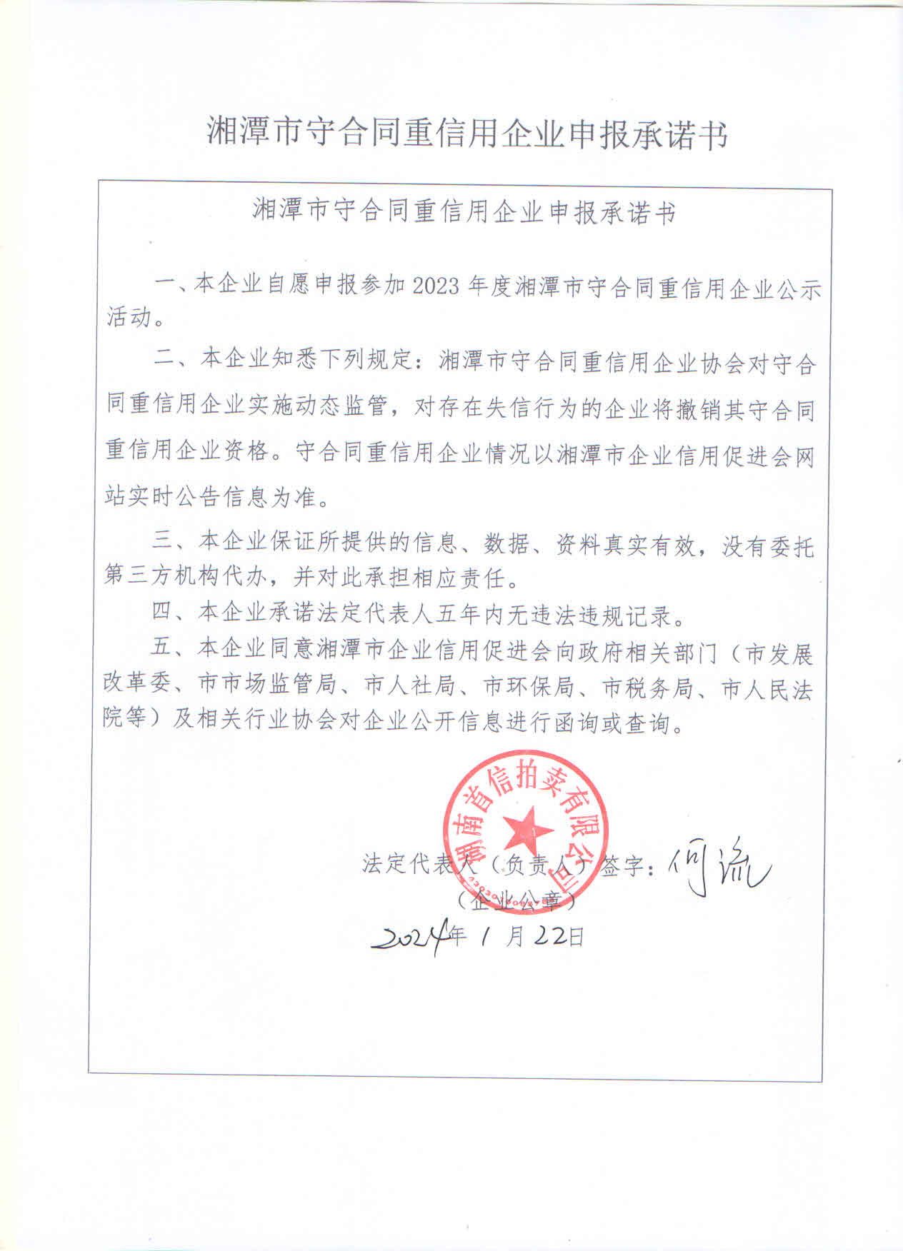 本企業根據《湘潭市守合同重信用企業申報規定》等編制 2023 年度企業信用報告書,并保證本報告書內容真實、準確、完整。