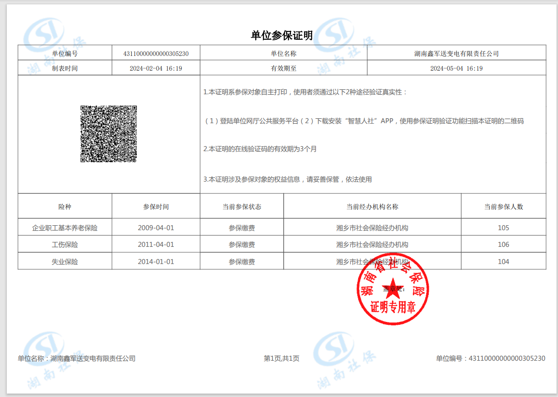 社保繳納證明: