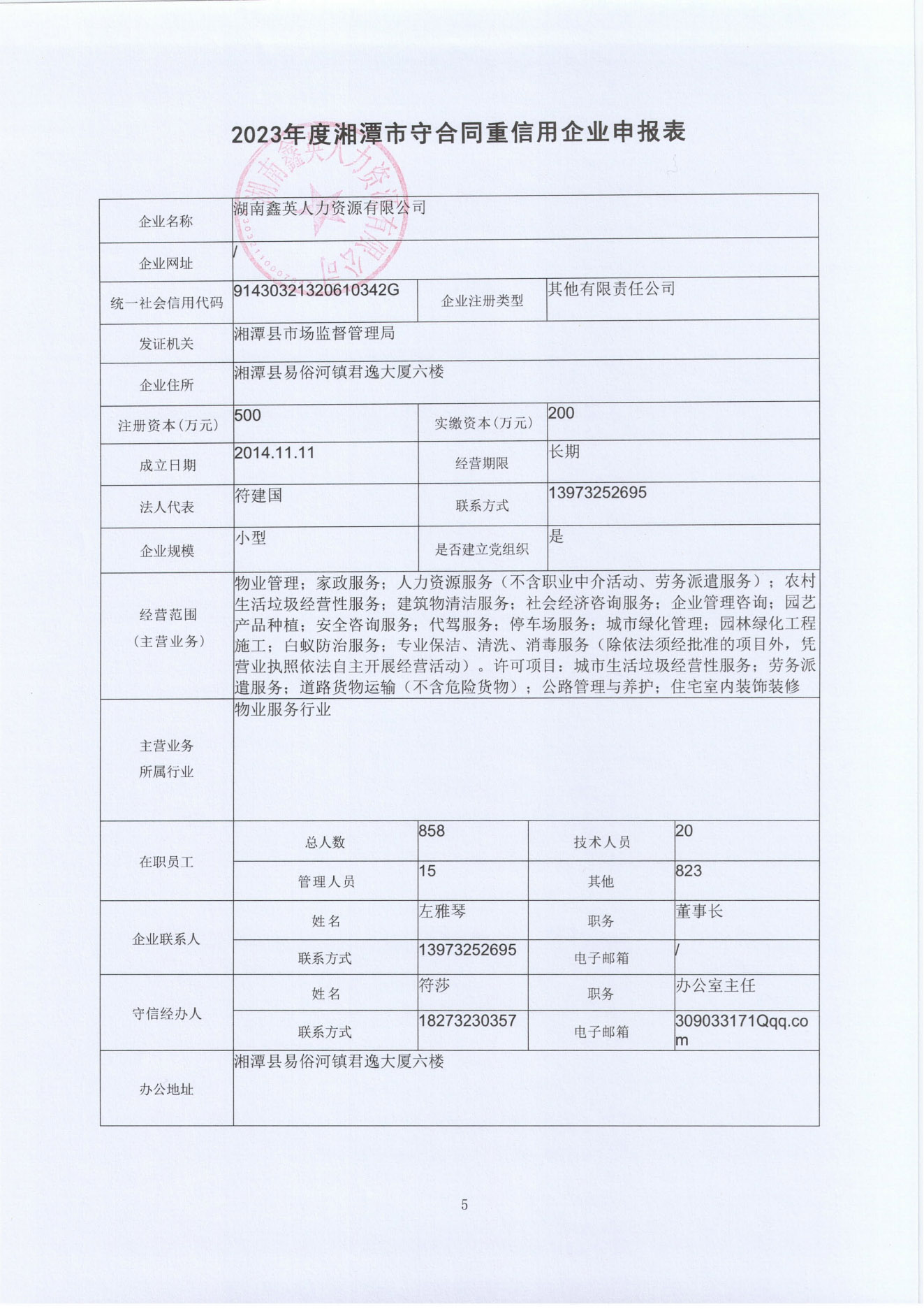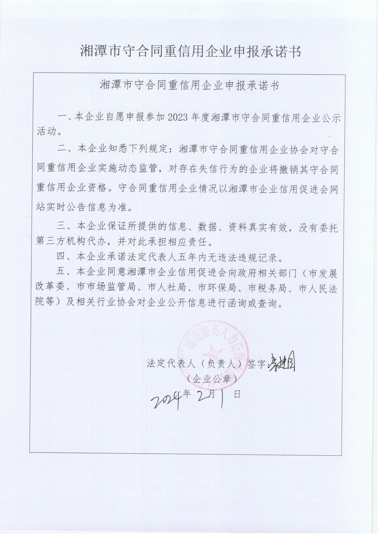 本企業根據《湘潭市守合同重信用企業申報規定》等編制 2023 年度企業信用報告書,并保證本報告書內容真實、準確、完整。