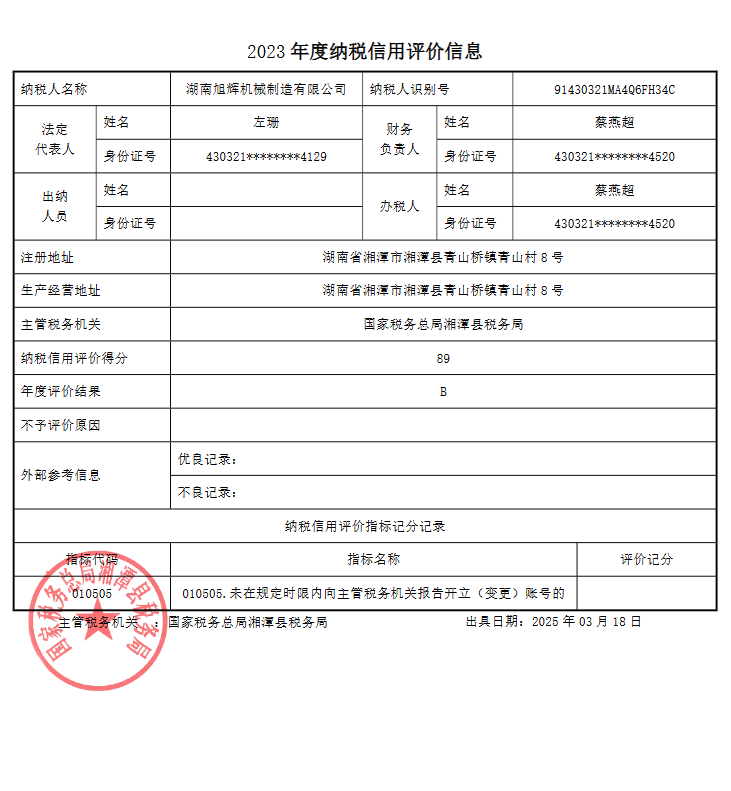 企業納稅信用等級報告: 旭輝納稅信用報告.png