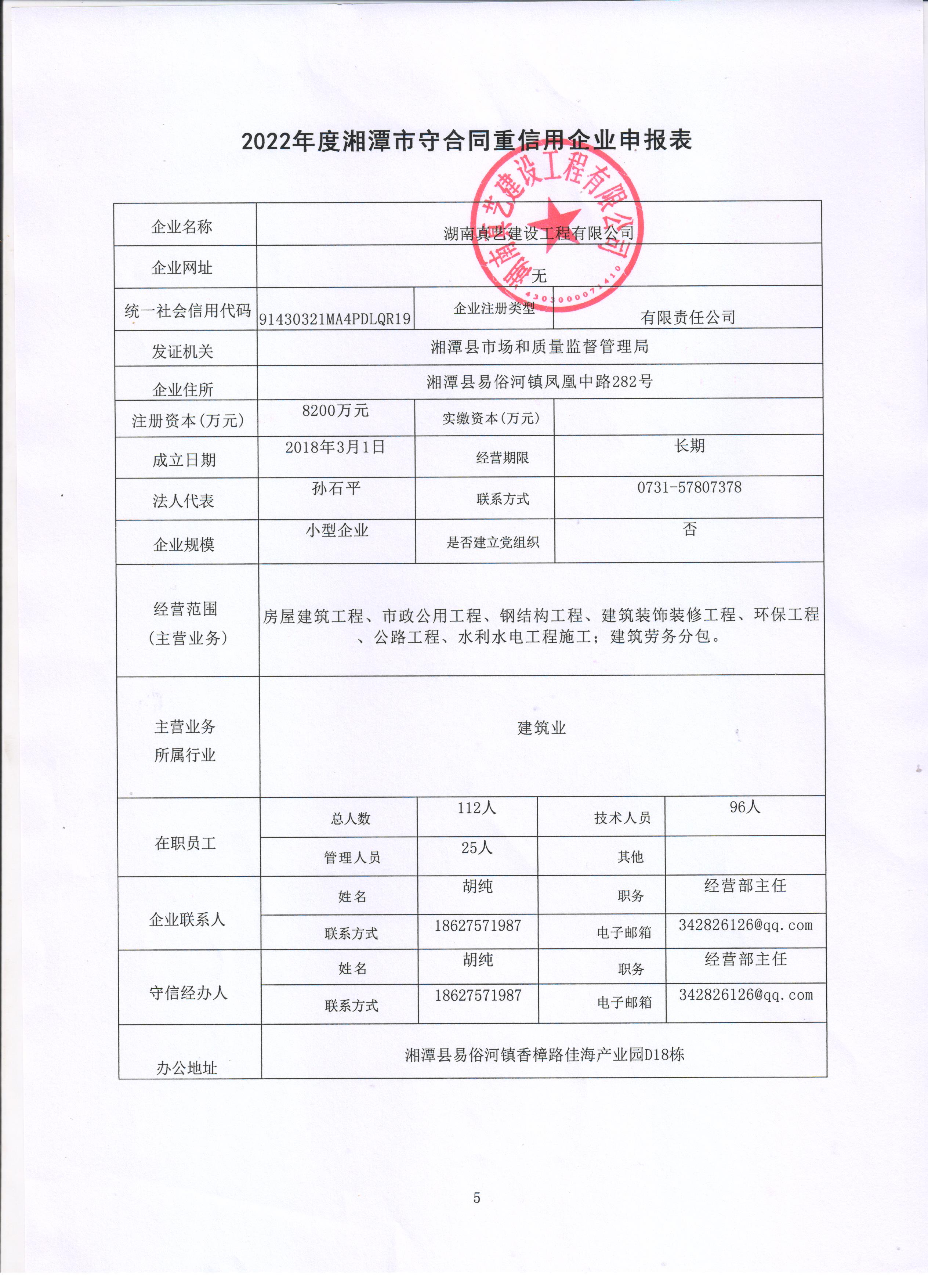 本企業根據《湘潭市守合同重信用企業申報規定》等編制 2022 年度企業信用報告書,并保證本報告書內容真實、準確、完整。