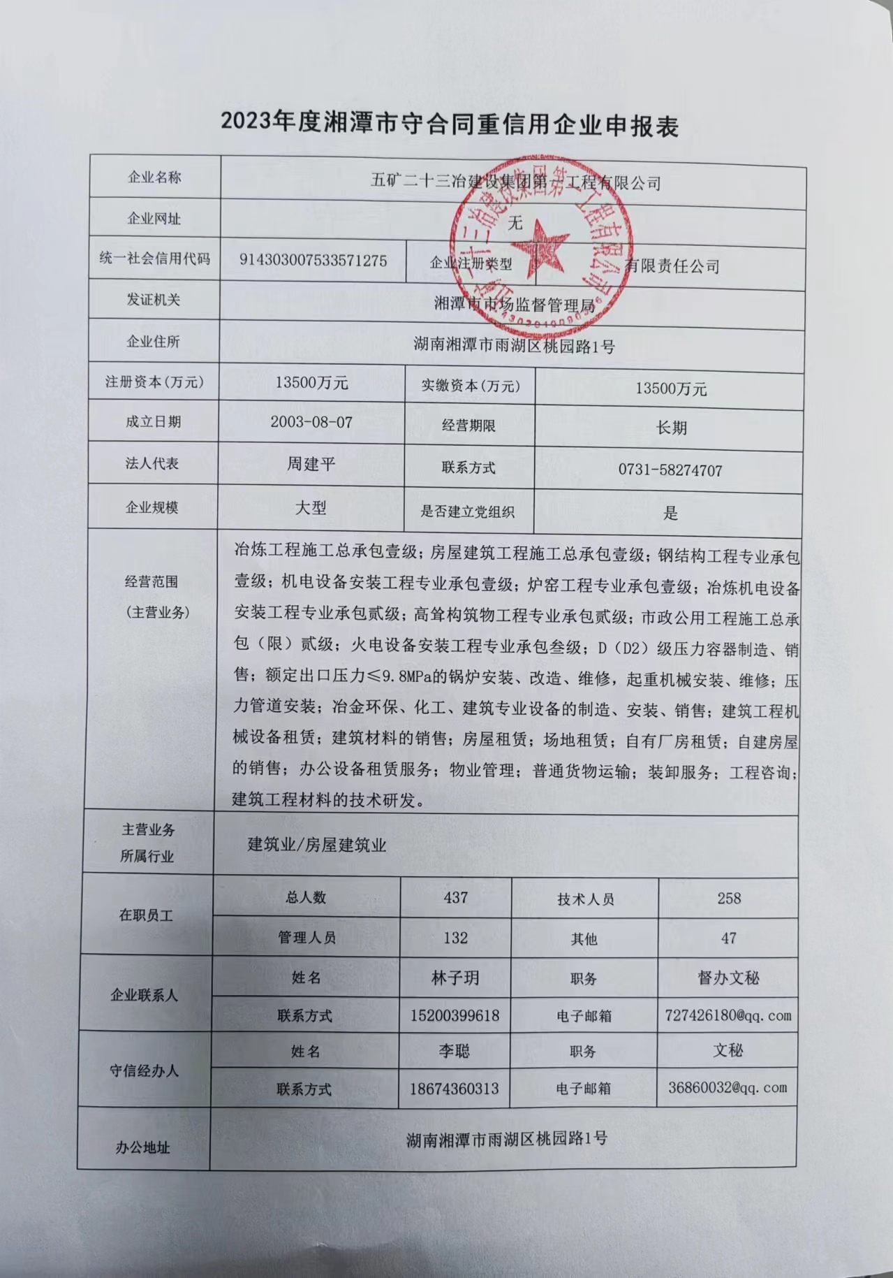 本企業根據《湘潭市守合同重信用企業申報規定》等編制 2023 年度企業信用報告書,并保證本報告書內容真實、準確、完整。