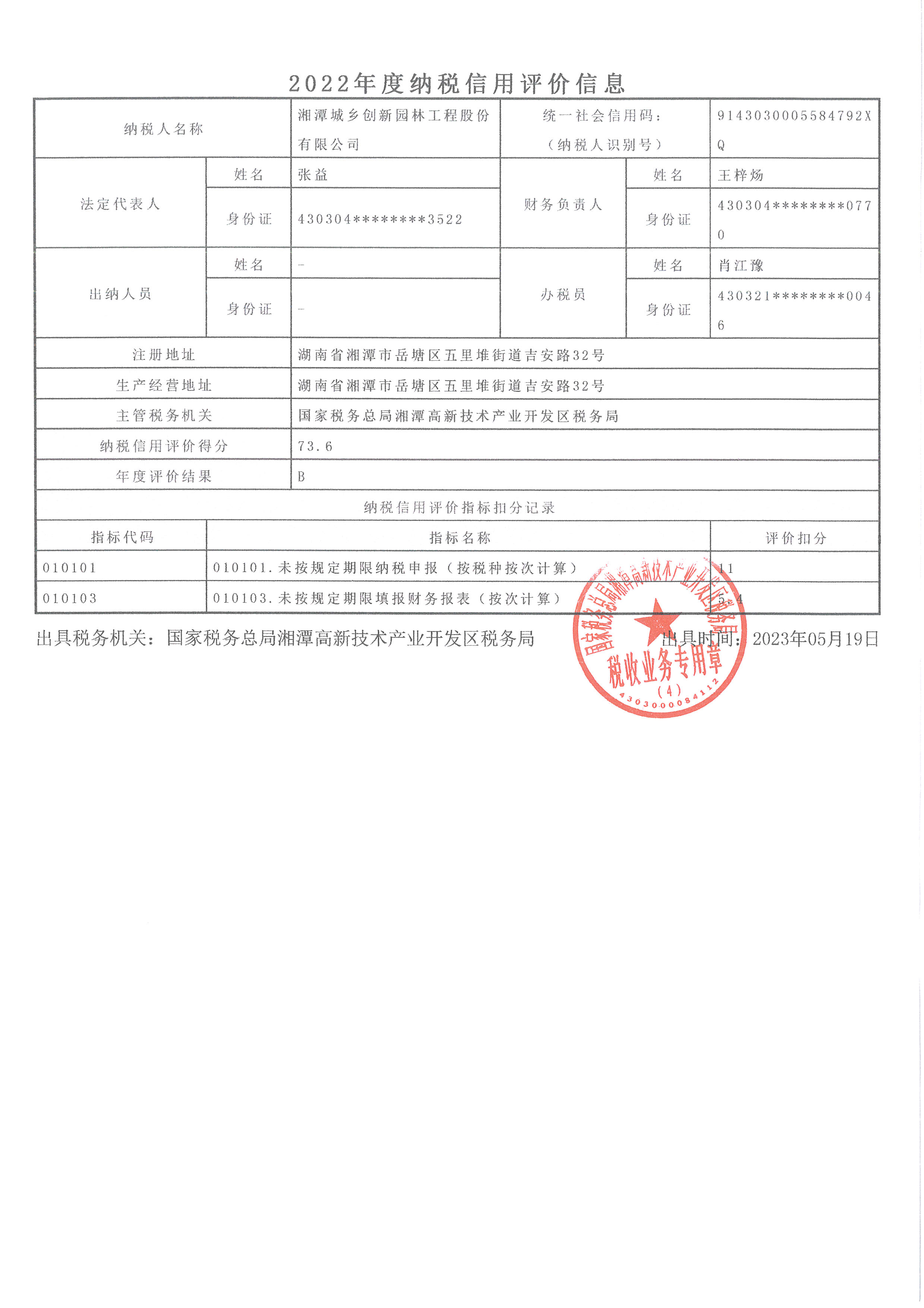 企業納稅信用等級報告: