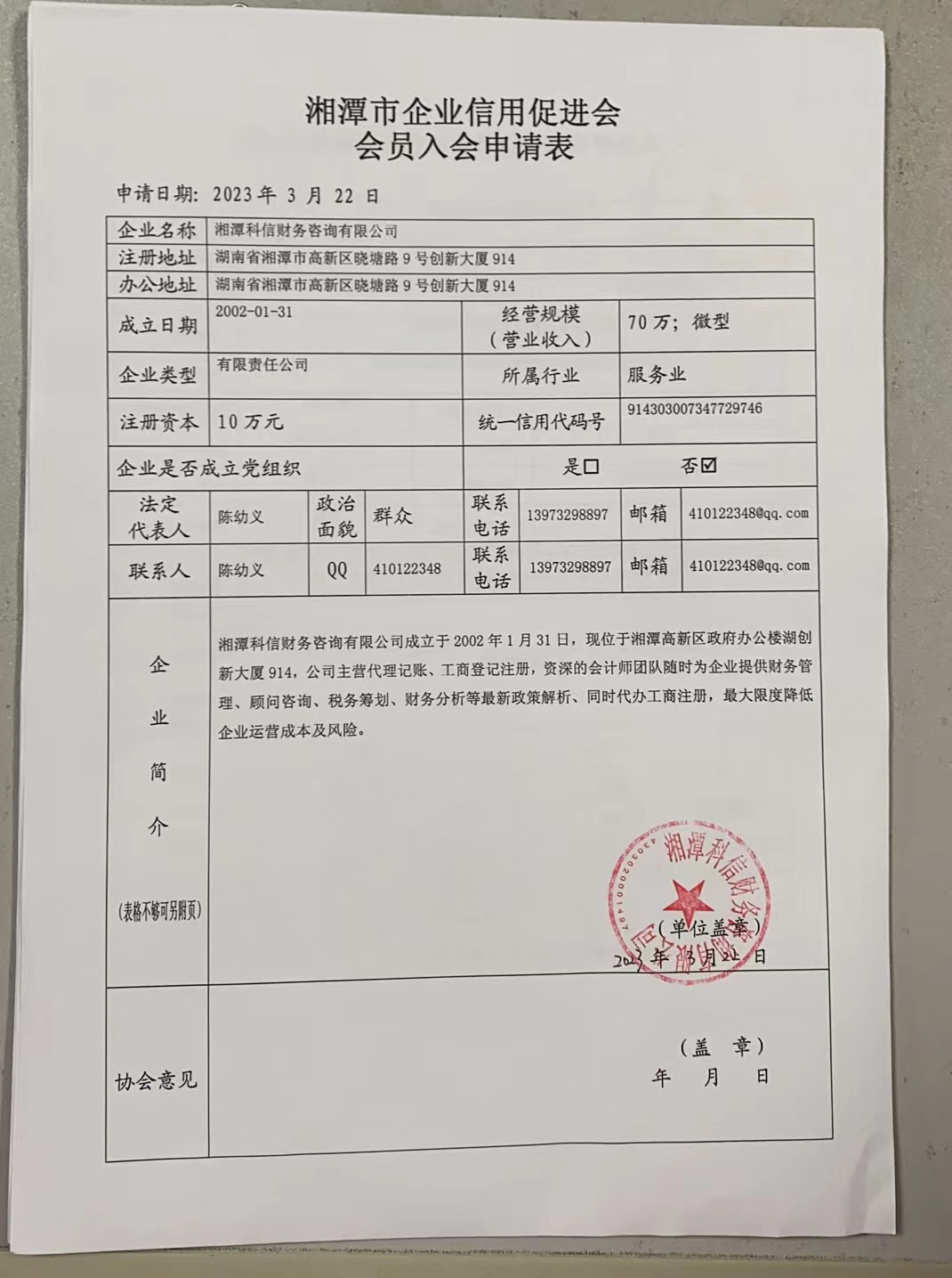住所: 湖南省湘潭市高新區(qū)曉塘路9號創(chuàng)新大廈914 業(yè)務(wù)主管單位: 湘潭市企業(yè)信用促進會