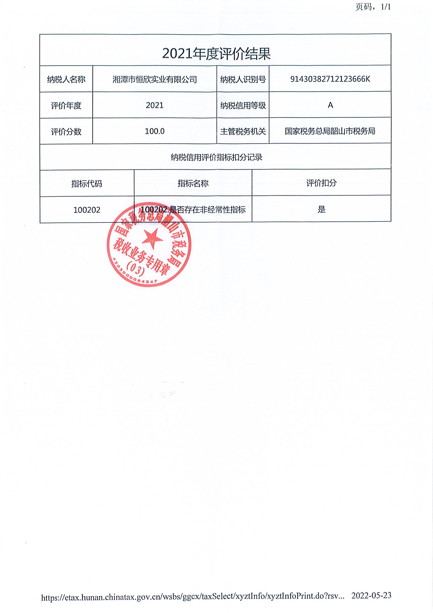 本企業根據《湘潭市守合同重信用企業申報規定》等編制 2022 年度企業信用報告書,并保證本報告書內容真實、準確、完整。
