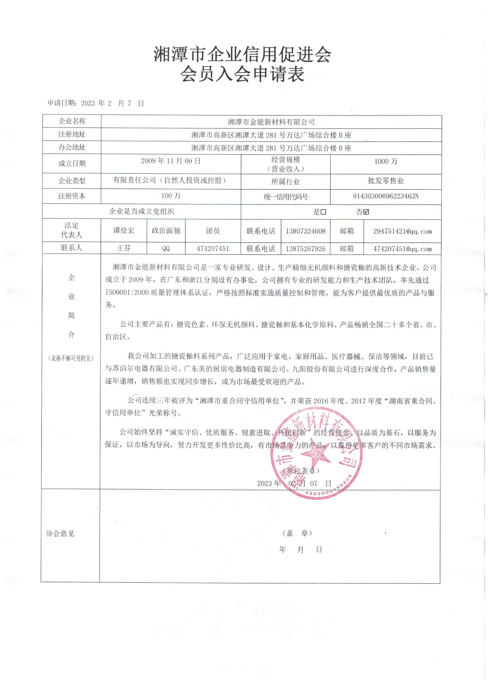 | 名稱(chēng): 湘潭市金能新材料有限公司 | 登記證號(hào): 91430300696223463N | 法定代表人: 譚繪宏 | |||||||||