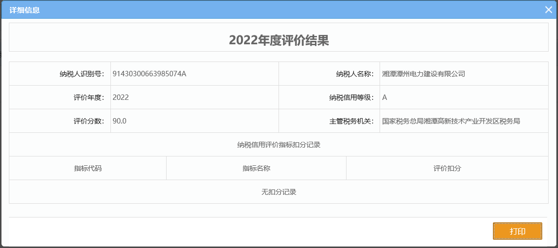 企業納稅信用等級報告: