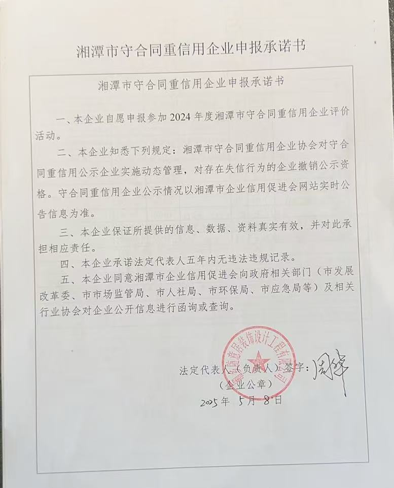 本企業根據《湘潭市守合同重信用企業申報規定》等編制 2024 年度企業信用報告書,并保證本報告書內容真實、準確、完整。